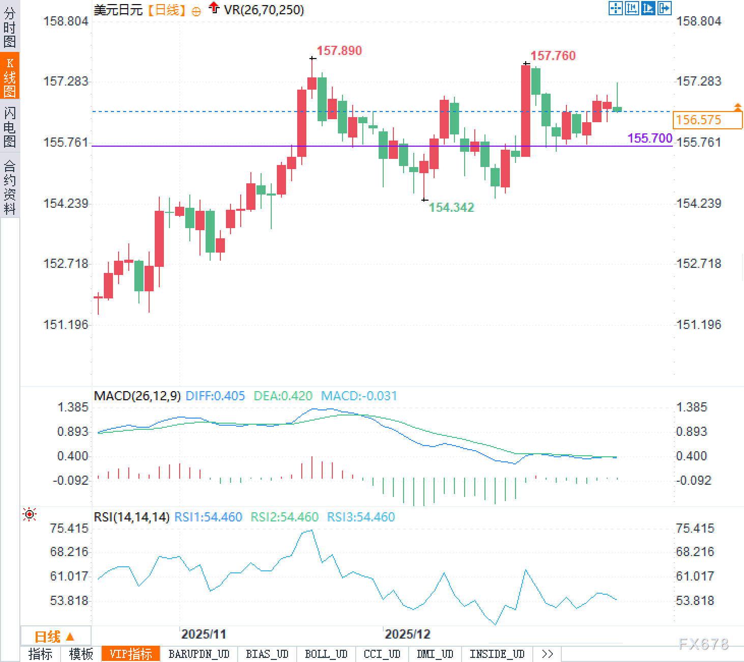 美元兑日元本轮最值得注意的不是单日方向,而是区间与节奏。日内从157.30附近回落至156.52一线附近,再到当前156.60附近徘徊,体现出短线资金对高位追涨相对谨慎,同时也说明下方承接并未显著崩塌:多空更像是在等待更清晰的宏观线索来决定下一阶段的主导叙事。
